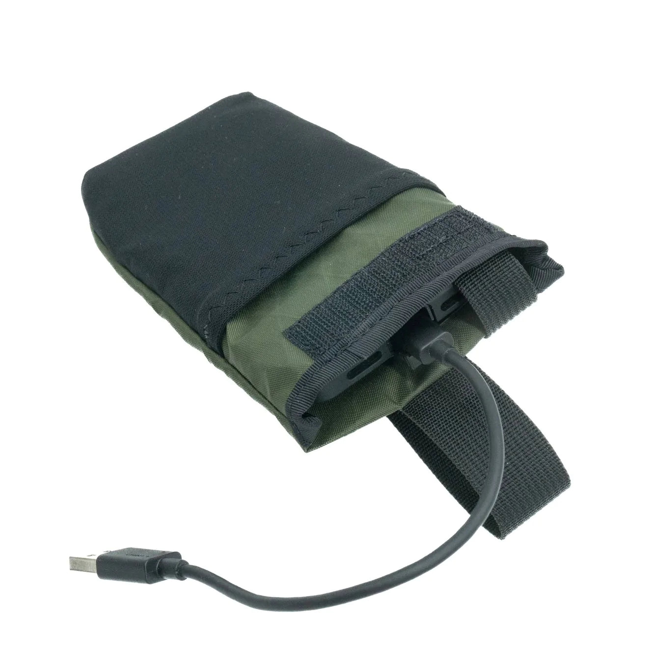- Two Closure Systems: The secondary closure on our phone pocket is designed to let you secure your phone while keeping the charging and/or aux port accessible. Simply fold in the main storm flap and pull out the strip of 3/4" webbing from the inner front panel. This webbing wraps over the phone and is secured with velcro on the back panel.