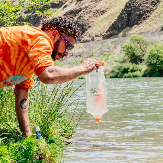 The VECTO is a soft, 2 liters (68 oz), collapsible water container. The patent-pending dual opening system allows for easy filling from a wide opening on one side and a narrow mouthpiece on the other. Use the Vecto for drinking or as part of a water filtration system with particular Sawyer, Hydroblu and LifeStraw filters.