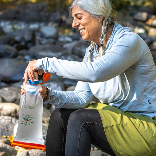 The Vecto is a soft, 2 liters (68 oz), collapsible water container. The patent-pending dual opening system allows for easy filling from a wide opening on one side and a narrow mouthpiece on the other. Use the Vecto for drinking or as part of a water filtration system with Katadyn BeFree water filter