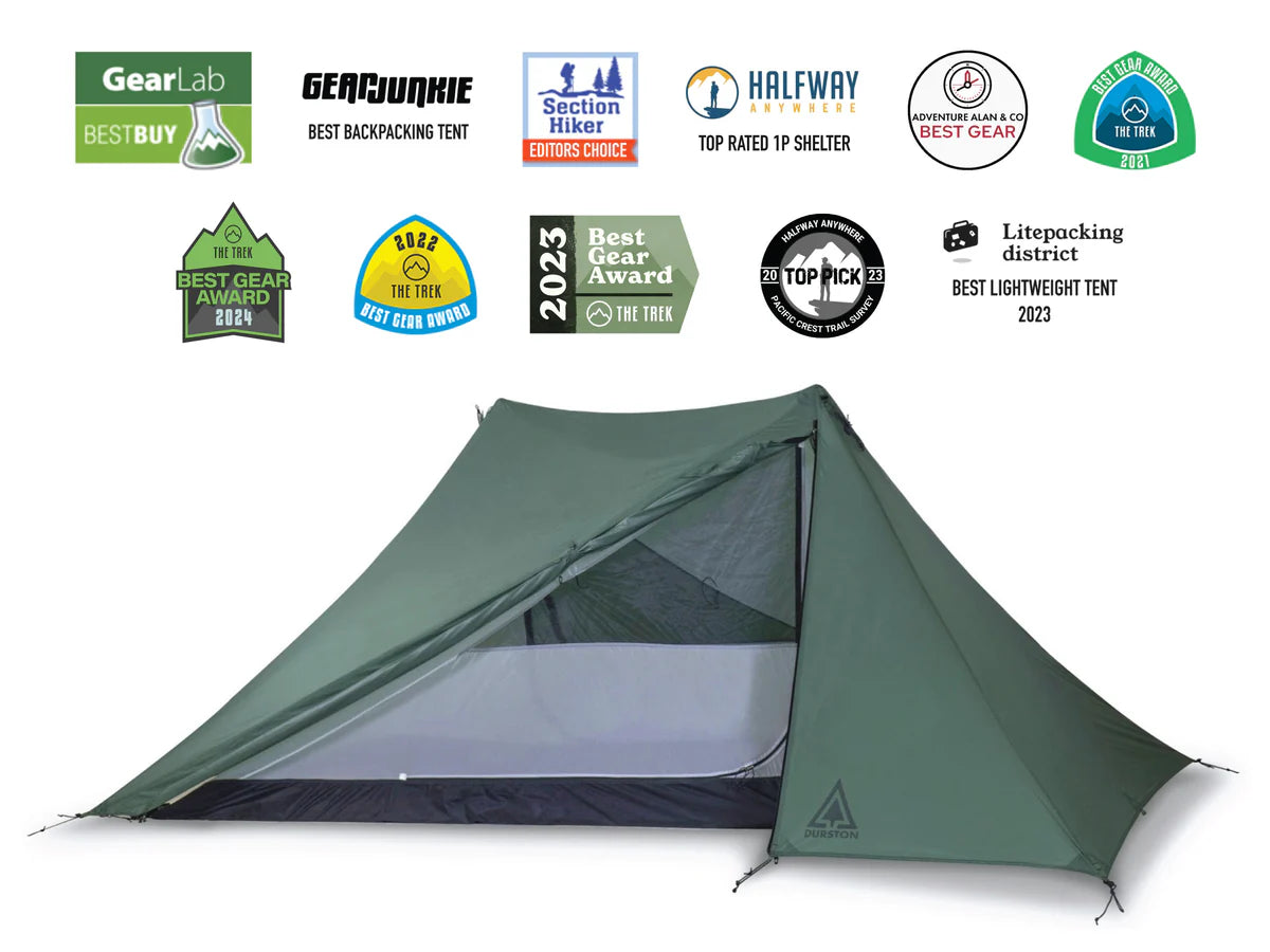 Patented X-Mid geometry with offset poles provides excellent stormworthiness and ease of pitching for less weight than any other geometry.