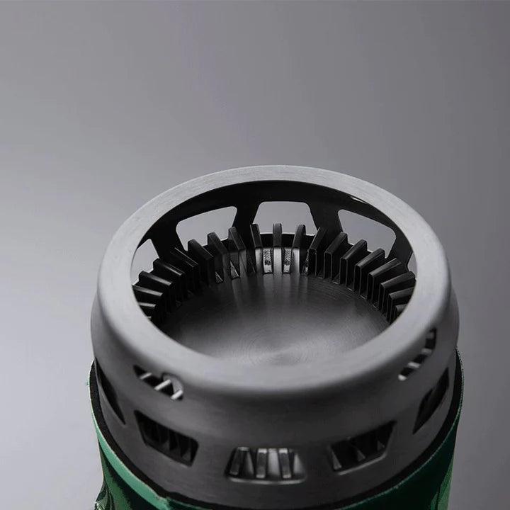 By combining the 0.8-liter cooking pot and the stove into a single integrated unit, you can bring water to a boil 30% faster than a traditional camping stove. The rugged anodized aluminum pot features a locking stainless steel handle for secure and safe handling while cooking. Water level measurement lines inside the pot make meal prep easy.