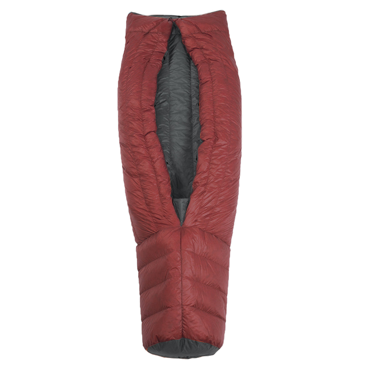 Made with 20 denier ripstop nylon fabric that features a DWR (durable water resistant) coating to help shed moisture, and an internal calendared finish for down proof construction. Each Burrow Quilt is generously filled with ethically sourced 850 fill power down to provide insulation on the top and sides of your body, while eliminating flattened and otherwise ineffective insulation underneath. By forgoing the least insulating elements found in most sleeping bags such as a full length zipper, hood, and backside materials our top quilt design will keep you warm and save precious weight and space. Whether accompanied by a ground pad or underquilt, The Burrow will keep you comfortably warm down to its temperature rating with any sleep system. When using The Burrow in conjunction with any ground sleep system, upgrading to a wide width is highly recommended for adequate coverage along the sides of your body. Proudly made in the USA.