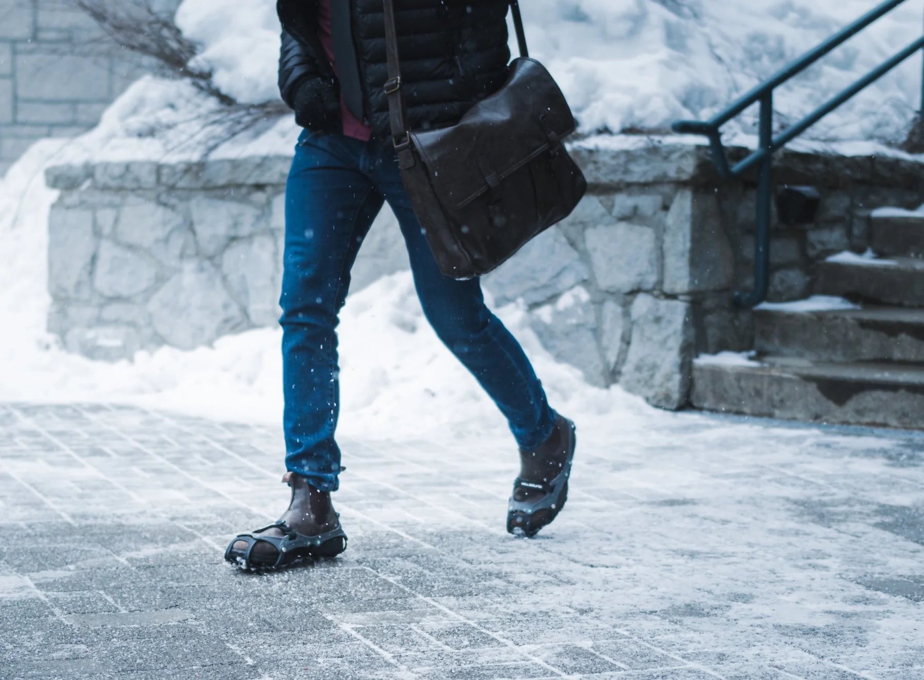 Reliable and versatile chain-free crampons / ice cleats that performs exceptionally well on icy sidewalks in an urban environment as well as slippery trails when winter jogging or dog walking. The sleek design is not only appealing but also gives you the option to use a variety of footwear; casual shoes, trail runners, hiking shoes (flexible soles), hiking boots (rigid soles) and insulated boots. These less aggressive crampons are fitted with 18 low profile, high impact, stainless steel spikes and flexible spike plates which gives you a good grip on icy surfaces, freedom of movement and high level of comfort. The riveted attachment points are there for long lasting performance and the velcro strap for added security so you can feel confident when heading out - knowing the crampons will stay secure underfoot. They come with a carry bag so you can keep them ready in your bag, backpack or car and bring them out as needed.