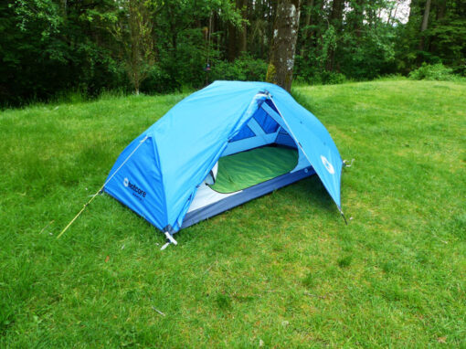 The polyester rainfly and floor have a PU coating to keep the water out. For example, with a 1500mm coating, the fabric can withstand a 1500mm column of water for more than one minute before a drop might work its way through this fabric. That is good enough to stop rain in most hurricane storms. New for 2019, our popular deluxe Mantis design is now built for 1 person use.