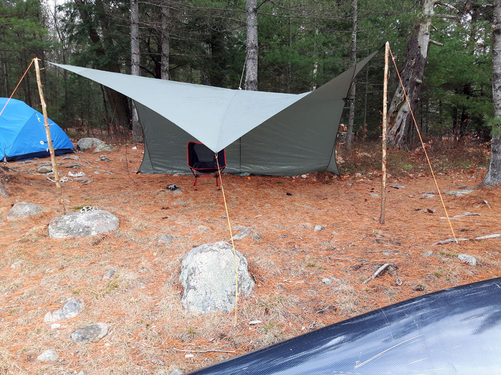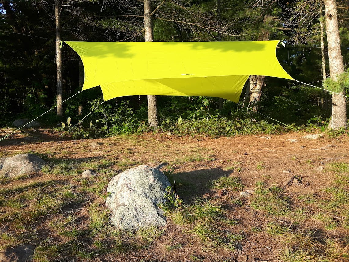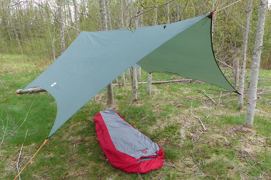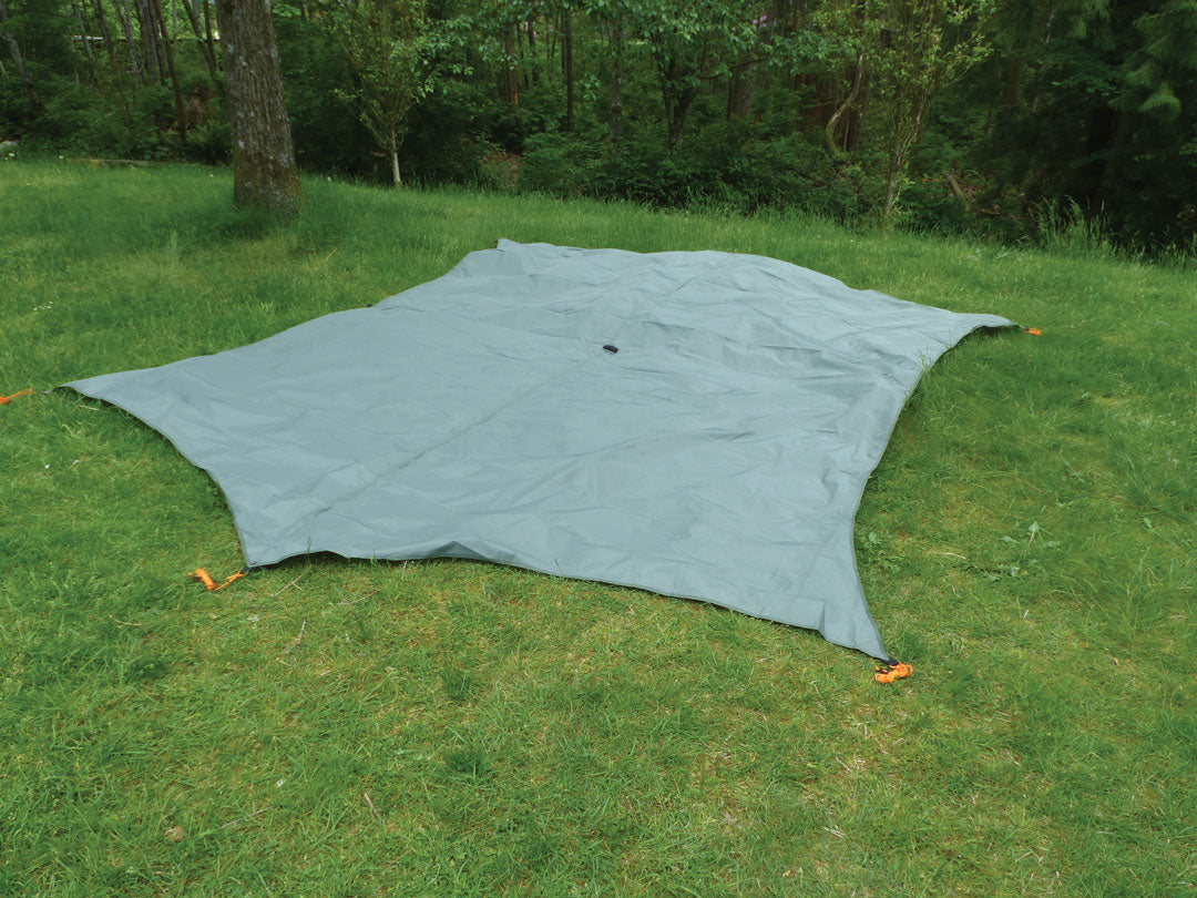 Tarps make campsites better-like this Multi sized, seam-taped, waterproofcoated, 75D polyester unit from Canadian company Hotcore. It comes ready to hoist with six high-viz guy-lines and two grommets, and at just 600 grams it’s good for car-camping or backcountry excursions.