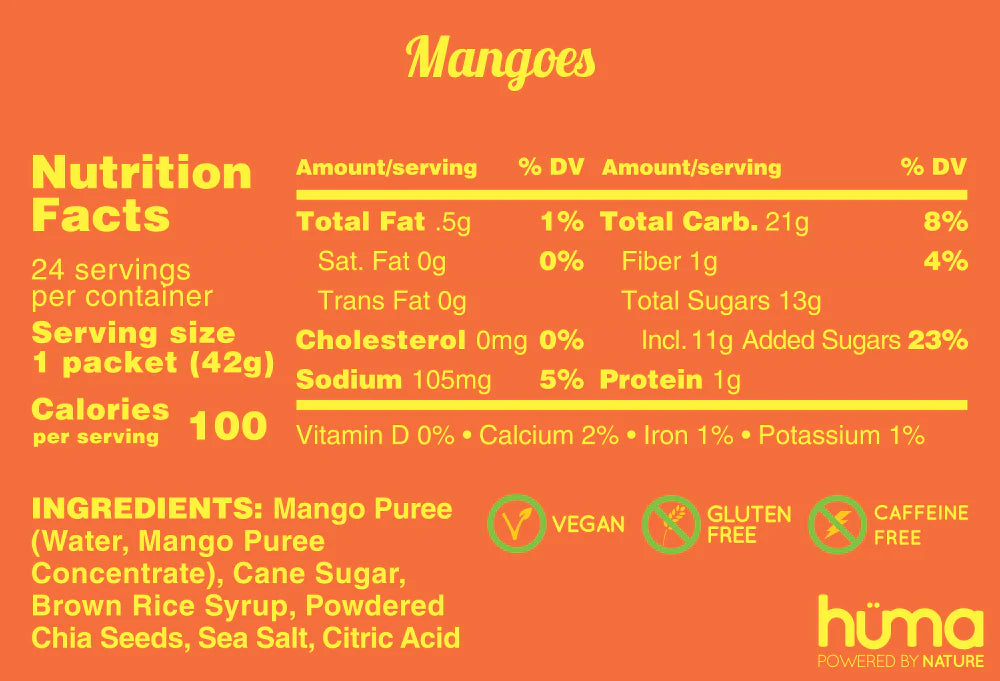 Fruit Puree. Chia Seeds. Brown Rice Syrup. You don't need a PhD to pronounce the ingredients in Hüma Gel.