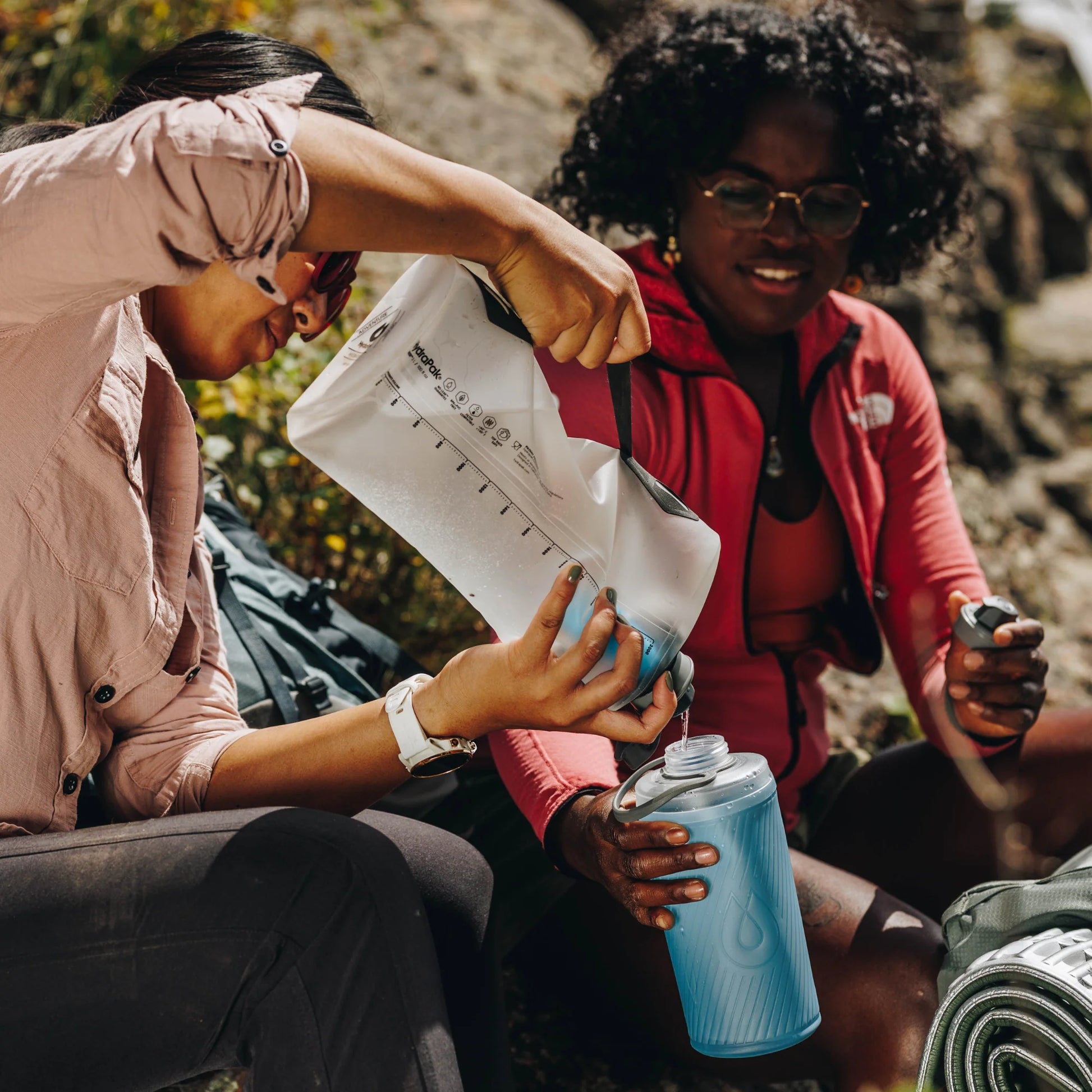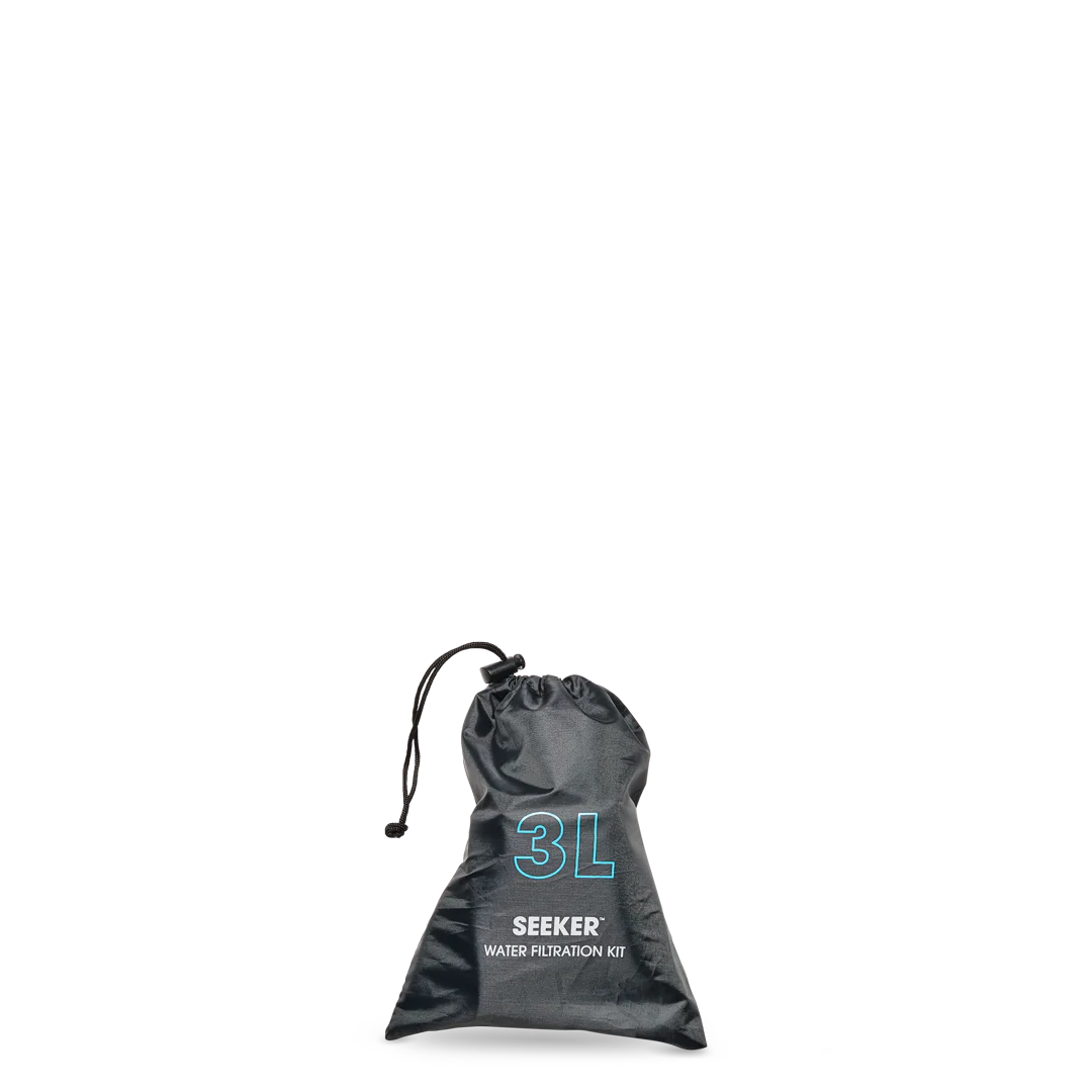Access potable water anywhere. Our go-to durable, ultra-light backcountry water storage solution is now a must-have water filtration solution. It’s ideally designed for easy water collection and storage that can be rolled and squeezed to filter into other camp containers. Topped with a dust cover and twist-filter nozzle for quick fill-and-go filtration, plus a weather-resistant handle and lash points to keep it secure in your hand or on your pack. The Seeker+ 3L packs down to pocket size in its own stuff sack with the filter stored inside so the filter is protected for safekeeping.