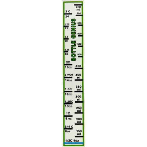 Turn your 1 liter Smart Water or Life Water bottle into a genius bottle with the BOTTLE GENIUS. The Bottle Genius sticker gives your water bottle several awsome functions. You get an accurate measuring cup in cups, ounces, and milliliters up to 3 cups, 750ml. It has the most common freeze dried meal measurements built right in. Easily mix electrolyte drinks on the go. You can also use it to help ration your water on long dry sections of trail. The Bottle Genius takes the guess work out of your back country water needs. The Bottle Genius sticker is flexible, durable and easy to apply. See photos for application directions or refer to the directions included in shipment. It is designed to be accurate when applied to 1 liter Smart Water & Life Water bottles. Nearly weightless, it does not even register on a kitchen scale. (bottle not included) **PRO TIPS: apply to new & clean bottle, use on your NON filter bottle as the constant squeezing may reduce sticker life