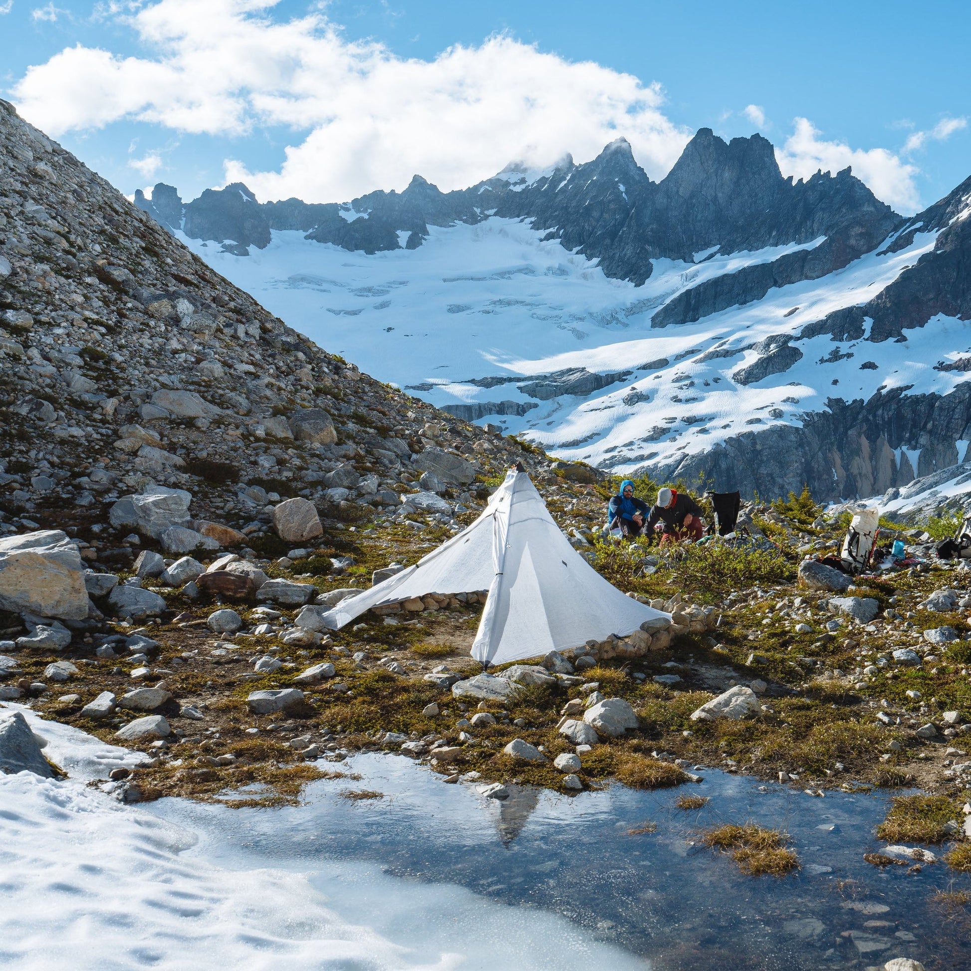 When it comes to portable shelter, few designs have been as thoroughly time-tested and proven as those built in the pyramid-style. They’re easy to set up, efficiently spacious, and because of things like physics, incredibly capable of providing sanctuary in all but the most extreme weather. While the remarkable 1.17 lbs. weight of the UltaMid 2 will be a welcome reduction to any kit’s overall mass, put any concerns to rest that it translates to a sacrifice in durability. The 100% waterproof Dyneema® Composite Fabrics used to build this elegant structure will outlast garden-variety silnylon materials many times over. Get cozy with the idea of unpacking the comfort and security of home, wherever home may be, for years to come. The UltaMid 2 can be pitched high off the ground or tight to the ground. Set up with adjustable trekking poles or suspend from central peak.