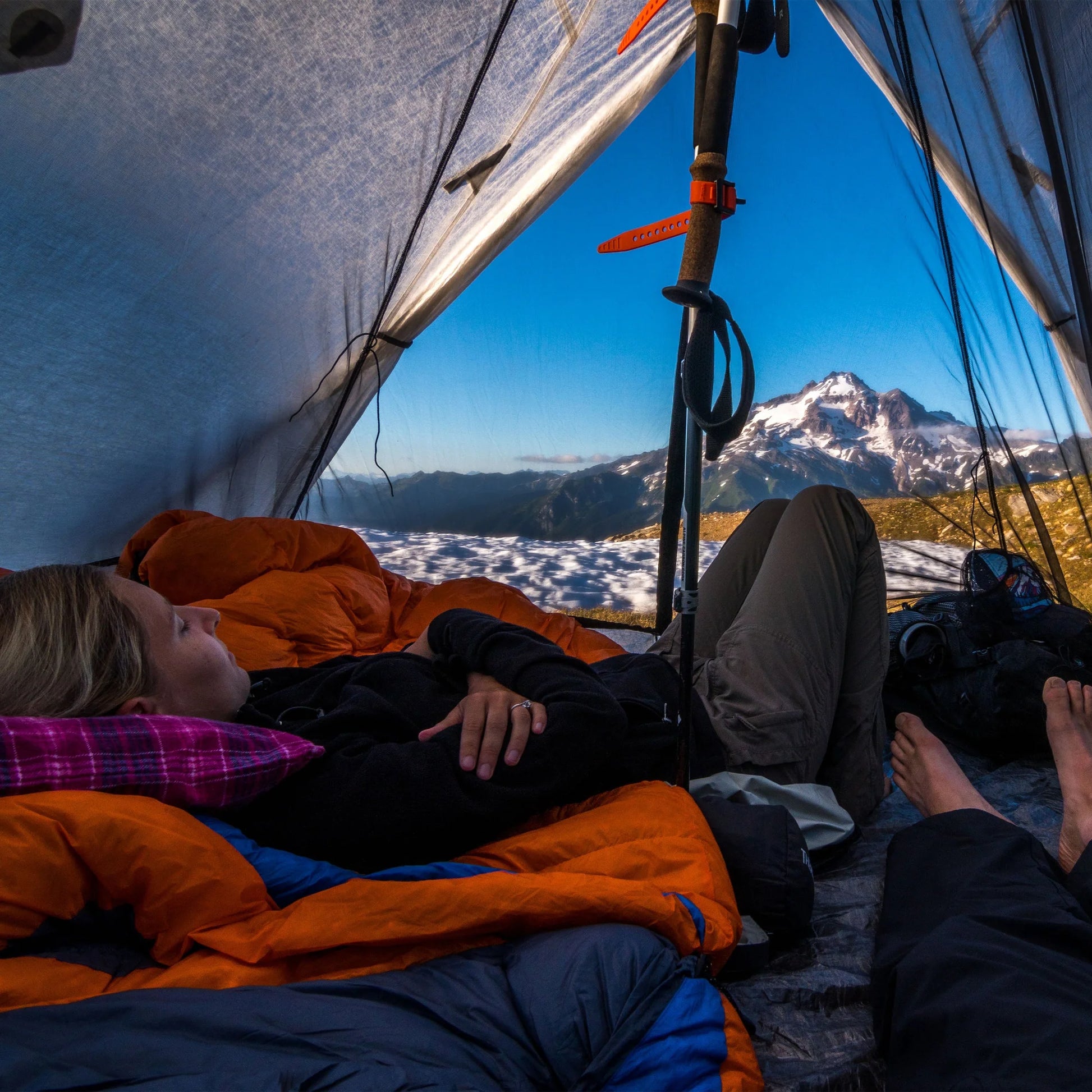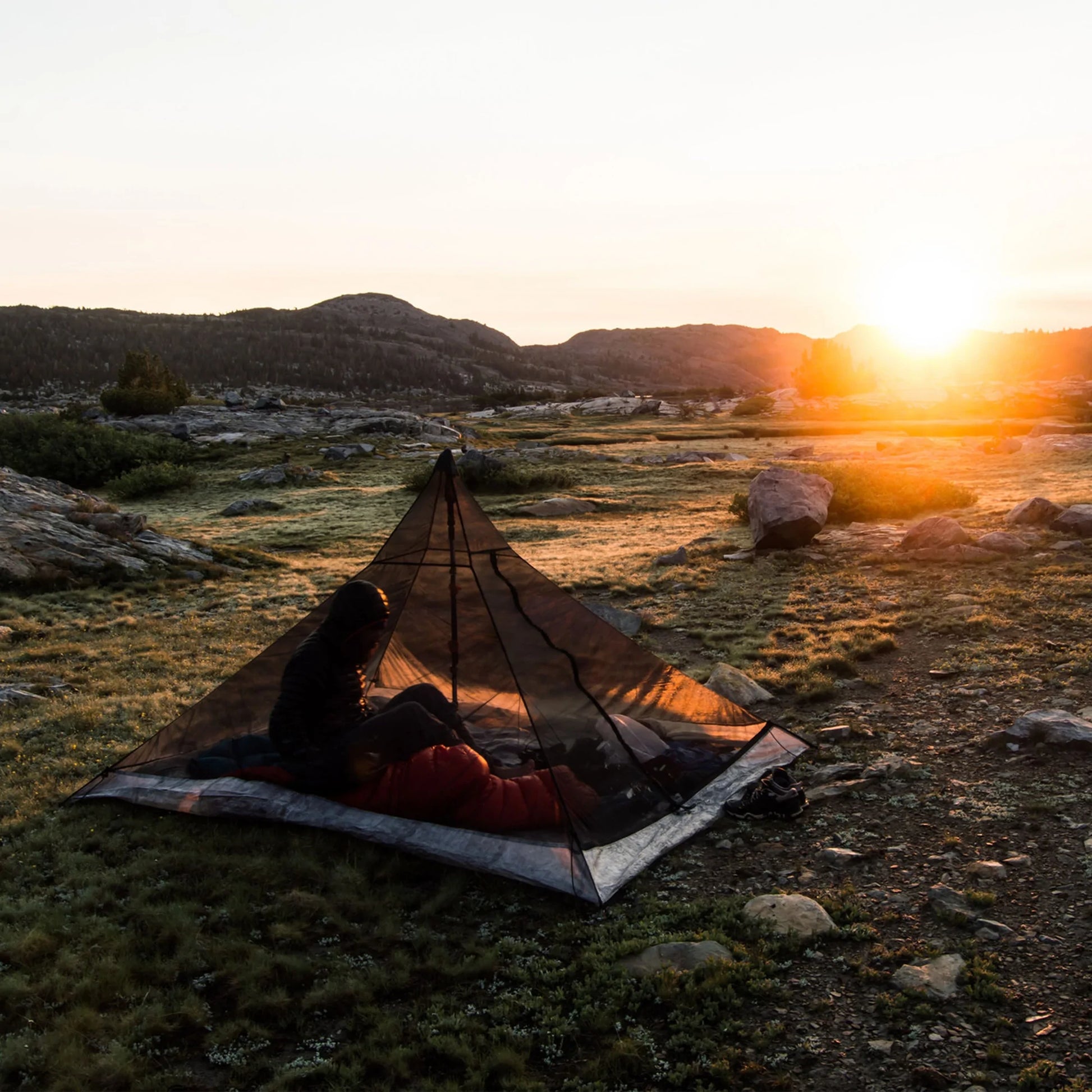 DURABLE MATERIALS: DCF11 Dyneema® composite fabrics bathtub floor with No-See-Um mesh walls provide a barrier from bugs and wet environments