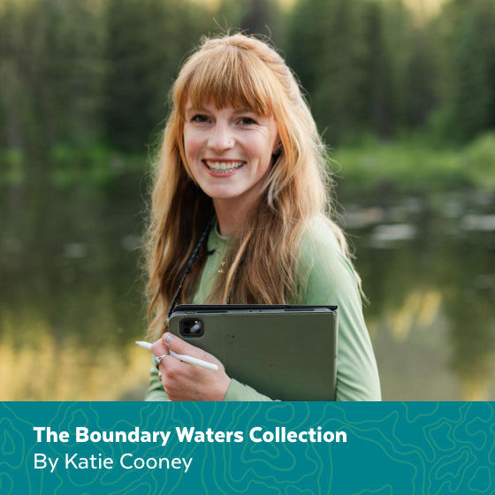The Artist Designed series showcases unique designs from talented artists in the outdoor community. Each exclusive collection is created by a new artist. The Boundary Waters collection was created by illustrator and photographer, Katie Cooney. These dazzling colorways are inspired by the understated beauty of the midwest and her time spent exploring Minnesota's Boundary Waters Canoe Area and Wisconsin's Northwoods.