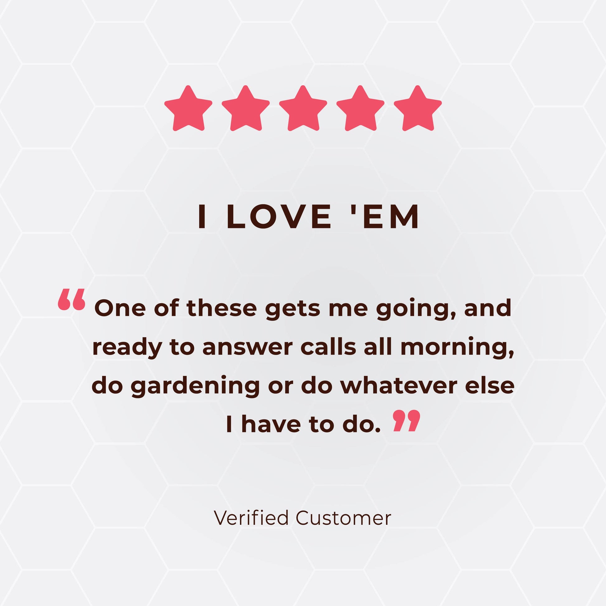 FAST-ACTING ENERGY WITHOUT CAFFEINE JITTERS – AN ENERGY BOOST YOU CAN CARRY IN YOUR POCKET Mocca Shots High Energy Gummies work 3x faster than coffee at half the price. With 200 mg caffeine per pack, our gummies contain as much caffeine as 2 cups of coffee! These tasty chews absorb within minutes so you won’t miss a beat. Our performance blend of caffeine and herbal nootropics boosts energy without jittery side-effects so you can focus fast and GET ____ DONE!
