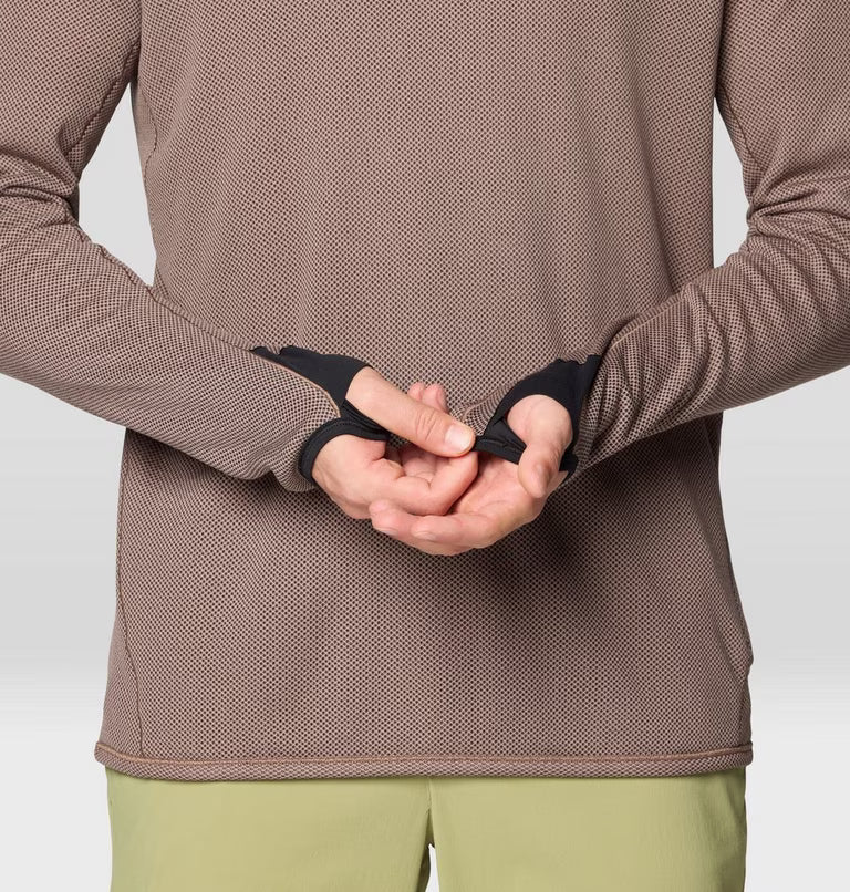 A single layer can have a bigger impact than you think. Our go-to, packable long sleeve houses the highest warmth-to-weight ratio of any fabric in our line, along with high breathability, conveniently comfy thumb loops, and a secure zip pocket for stashing essentials. This unique active mesh construction consists of hollow, tube-like fibers that absorb sweat quickly and efficiently—supporting insulation and heat-shielding properties to keep you temperature-regulated from the trail to the lift, and everywhere in between.