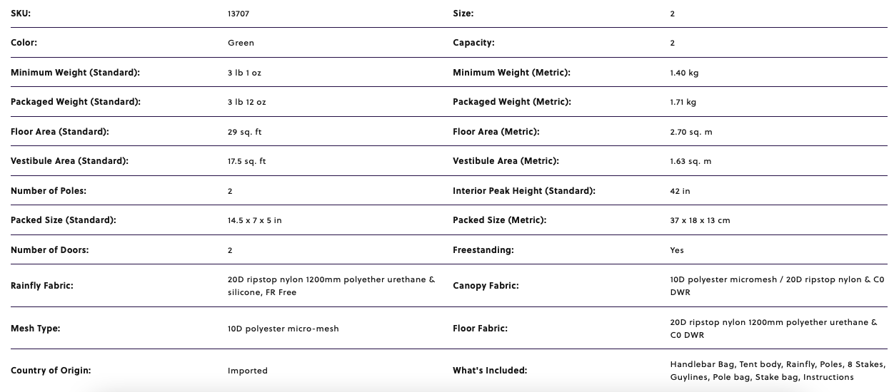 - Full-Featured Rainfly: Two large StayDry™ doors with built-in rain gutters and kickstand vents for extra ventilation.