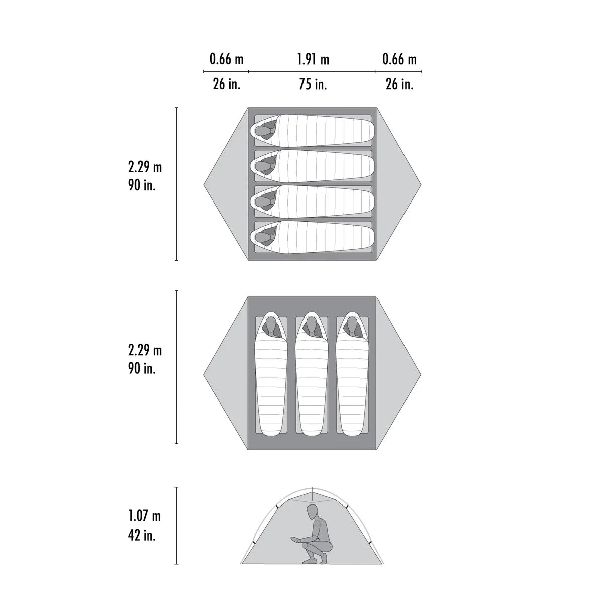 The airy Hubba Hubba LT 3 has a trick up its sleeve; it can also be a 4-person tent. With enough space to accommodate three wide sleeping pads width-wise or four regular pads length-wise, it’s equally at home in the backcountry or as a car camping tent.