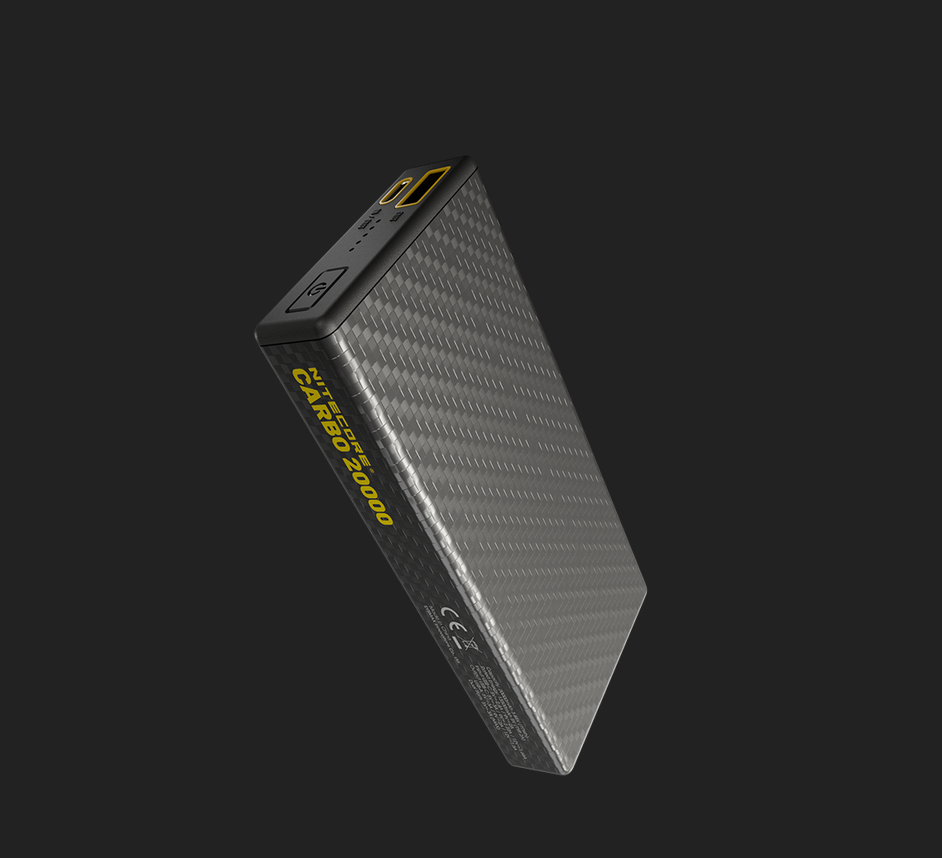 The Nitecore Carbo 20000 is the lightest 20k power bank in the world. Nitecore spared no expense, no more panels, no more sheets, a full unibody carbon fiber shell. In the palm of your hands is enough reserve power to charge the latest iPhone 14(3,279 mAh) 4.6 times over! The Carbo 20k takes the spot as Nitecore largest portable power bank; a must-have for road warriors, outdoor enthusiasts, campers, first responders, and more. An excellent companion to Nitecore's portable solar panels and an essential for emergency kits, or bug-out bags.