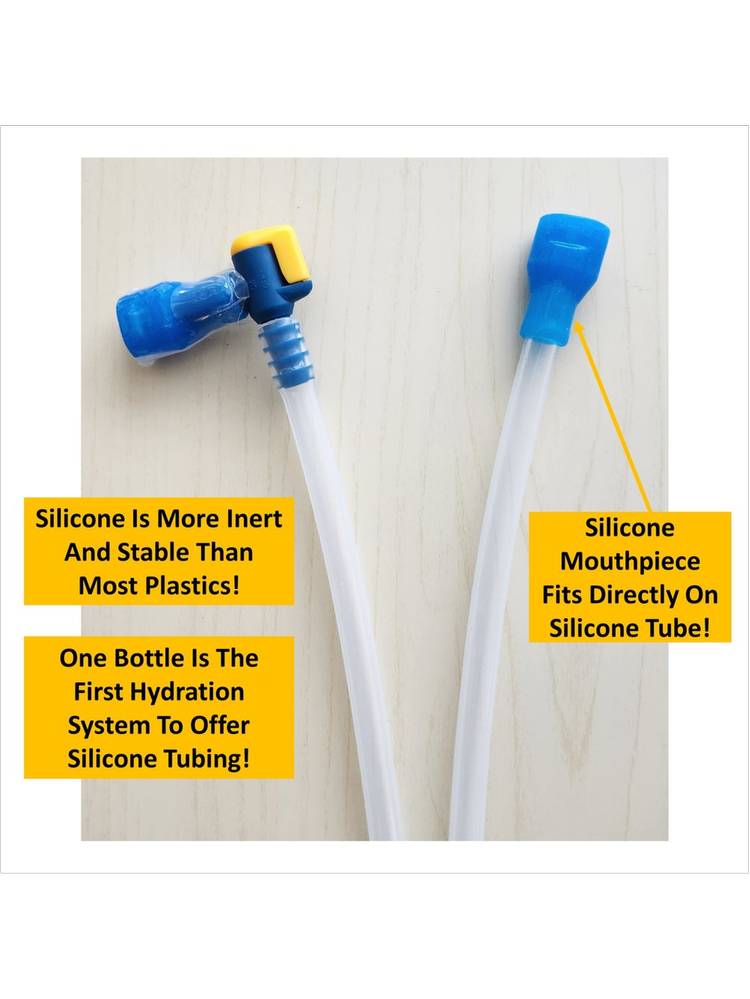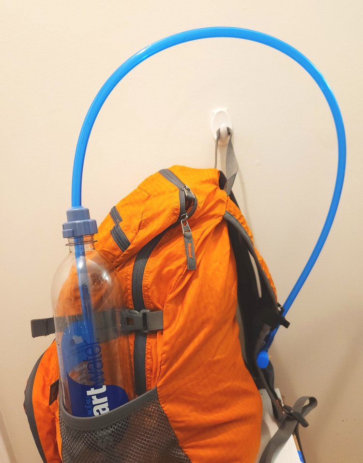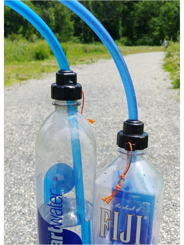 This all-new design works just like the original version - you carry your bottle in the side pockets of your pack and drink from the 43” long tube and included bite valve! The adapter fits the 28mm Smartwater bottle which has the same mouth as most of the premium water brands like Fiji, Life WTR, Essentia, as well as most of the soda bottled in the US. Because the tube goes straight through the top, you can just pull it up and down to adjust to any bottle height!