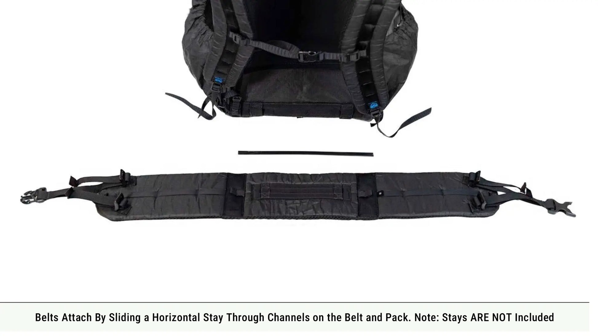 A 10.5" horizontal belt stay is required to attach a belt to one of our framed packs.