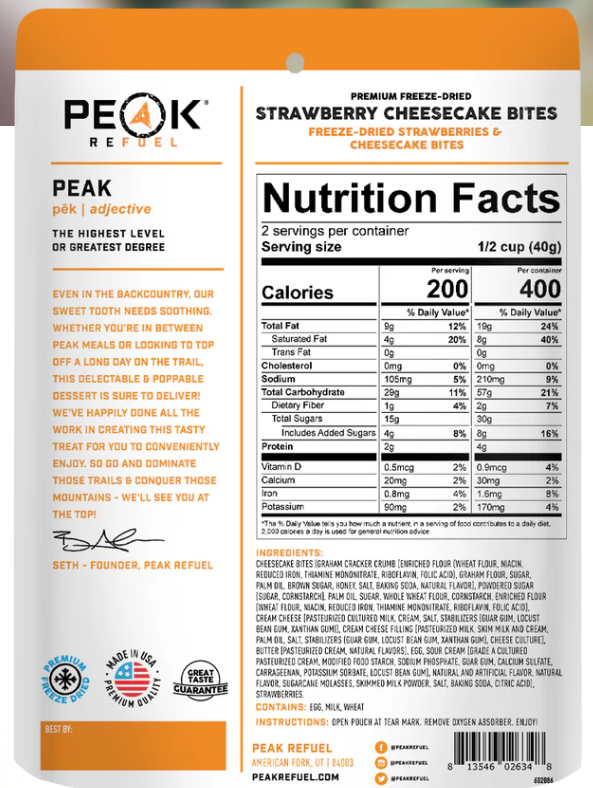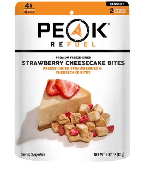 Get ready to take your taste buds on a wild ride with Peak Refuel's Freeze-Dried Strawberry Cheesecake Bites! Perfect for the backcountry, these bite-sized cheesecake treats are packed with freeze-dried strawberries and creamy cheesecake goodness — all in one delicious snack. Whether you're summiting mountains, tackling trails, or just kicking back at camp, these bites are the sweet fuel you need to power through your outdoor adventures. Lightweight, no refrigeration required, and irresistibly tasty — they're like a little slice of heaven, minus the hassle. So, grab your pack and treat yourself to the ultimate backcountry dessert. You’ve earned it!