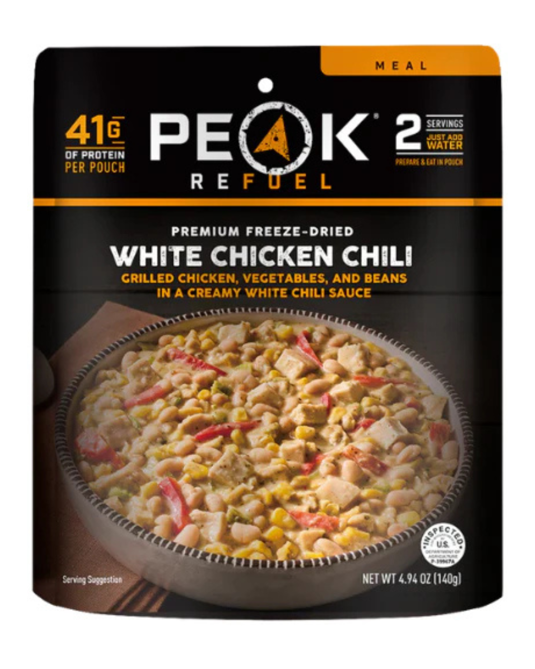 Fuel your adventure with Peak Refuel’s White Chicken Chili, packed with 41 grams of protein and 760 calories to keep you energized. This hearty meal features tender grilled chicken, a satisfying mix of veggies, and wholesome beans - all simmered together in a rich, creamy white chili sauce. Whether you’re on the trail or at home, this delicious and filling chili is perfect for any occasion when you need a tasty, protein-packed meal. Quick to prepare and easy to enjoy, it’s the ultimate comfort food for those who crave both flavor and nutrition.
