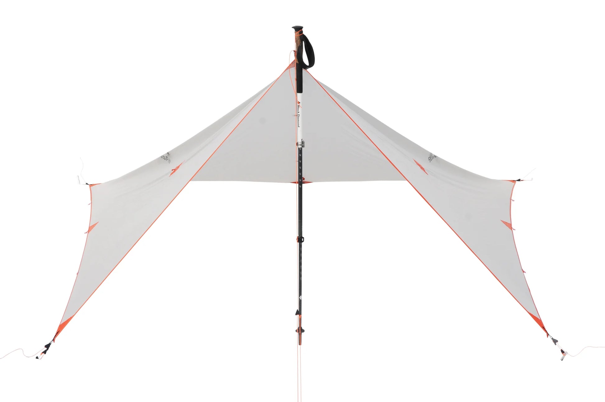 The flat tarp is the quintessential multi-purpose shelter, prized for its versatility, simplicity, and roominess. A flat tarp can be adapted to just about any set of conditions by changing the pitch, and is equally at home as an emergency shelter on a day-long ski tour or as a group hangout for cooking on a rainy backpacking trip.