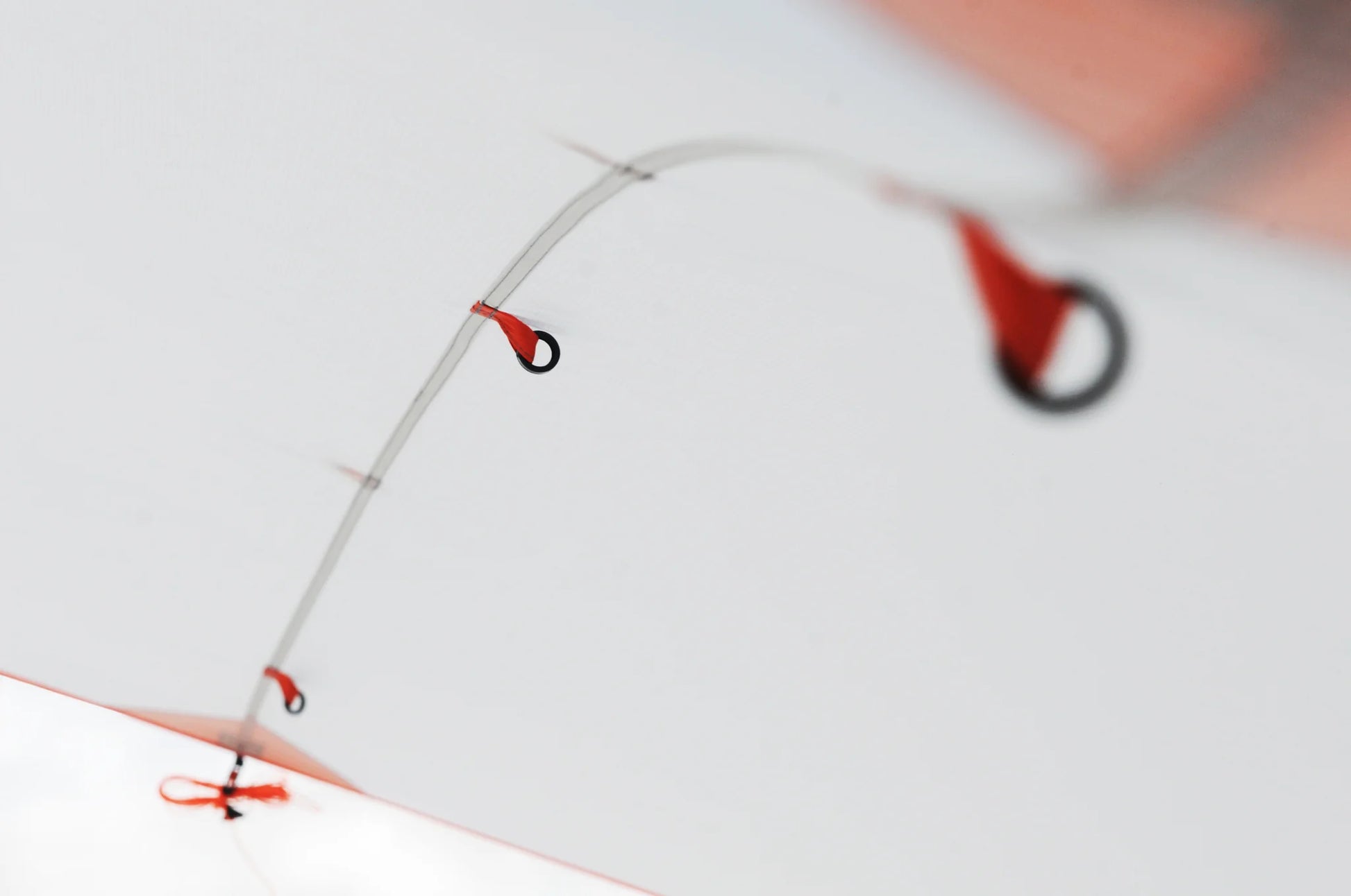 Our NFT is a 9.5' x 10' flat tarp that addresses several qualms we had with most flat tarps by adding subtle catenary curves around the long edges, which make for a gorgeous, taut pitch in the A-frame configuration, unlike straight-edged tarps, which tend to flap due to bias stretch in the large side panels. However, we didn't add a caternary cut to the ridgeline seam so your pitching configurations wouldn't be limited to an A-frame. We also added cord tensioners at both ends of the guylines to make trekking pole positioning straightforward and quick.