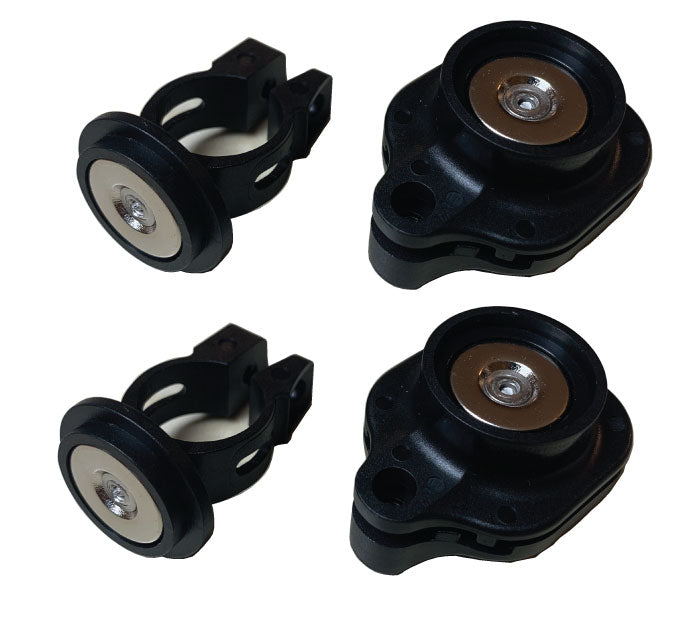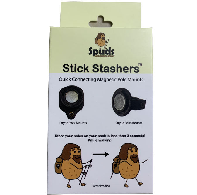 Quick connecting magnetic pole mounts. Simply store your trekking poles on your pack in less than 3 seconds while you walk!
