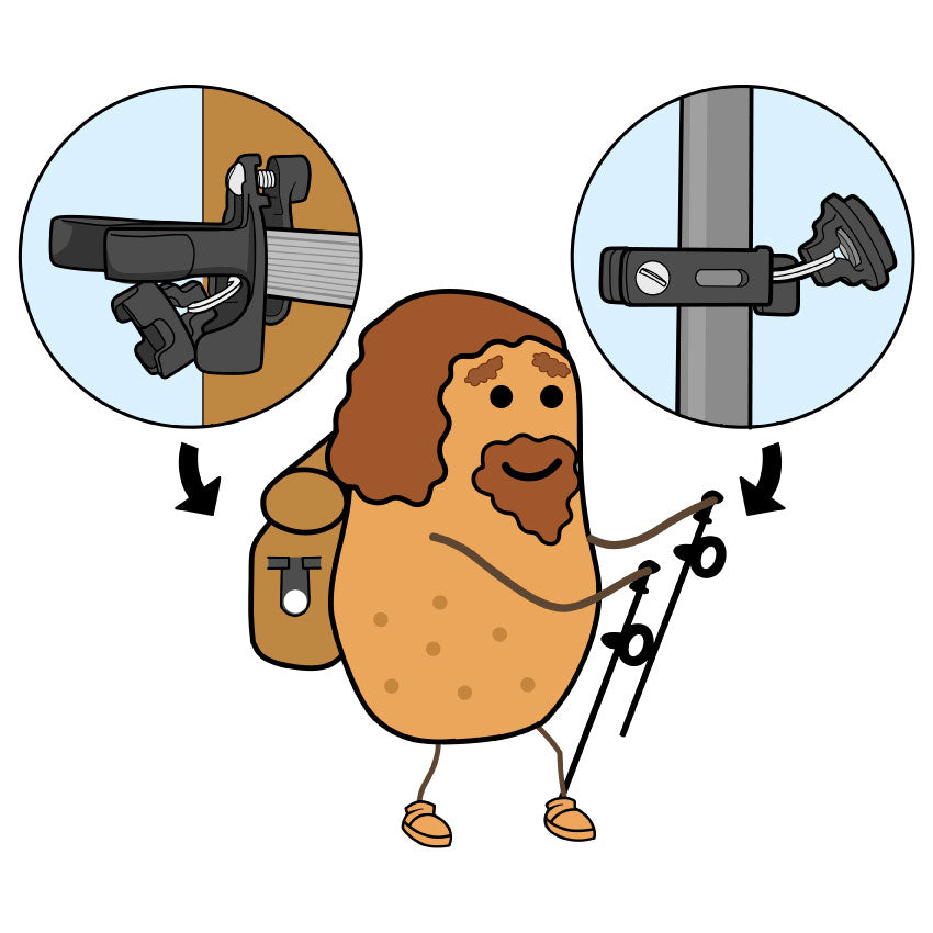 Additional clip allows for more secure attachment of the trekking pole to the backpack.