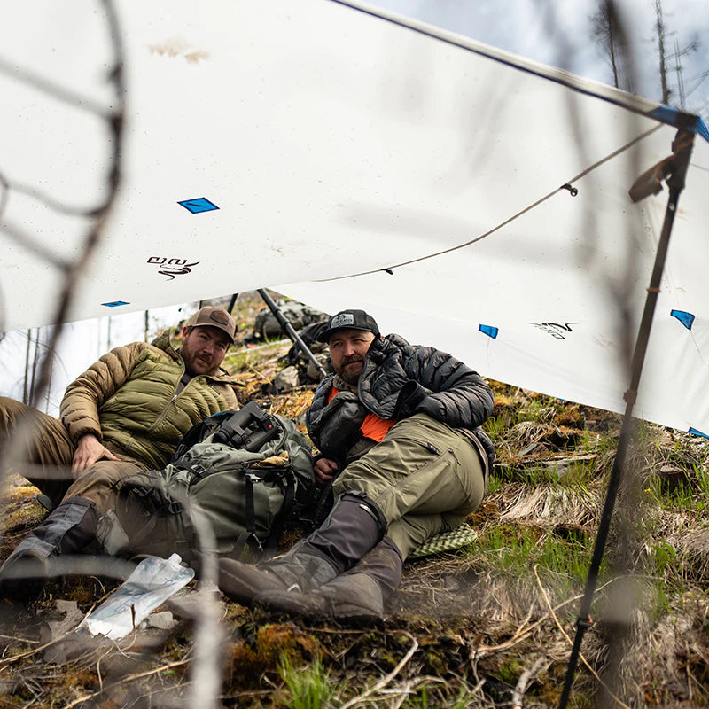 The SkyTarp 10 adds a highly versatile tool to your kit for ultralight protection from snow, rain, wind, and sun. Weighing a mere 13.5 ounces (tarp and 6 guy lines), the SkyTarp 10 disappears in your pack but punches above its weight as a waterproof and windproof shelter when you need it. It can be supported by trekking poles, tree branches, or any elevated tie-off you can find and features ten stakeout points that enable a myriad of configurations, including a primary A-frame configuration, lean-to and modified A-frame setups, or endlessly adaptable setups depending on your needs. It can also be run as a standalone shelter for camping in mild, bug-free conditions; as an awning off of tents or trees to create more livable space at camp; as a glassing shelter; or as an emergency shelter. From sun-soaked flats to windswept alpine vantages, the SkyTarp 10 is an essential utility piece that can keep you in the game without bogging down your pack.