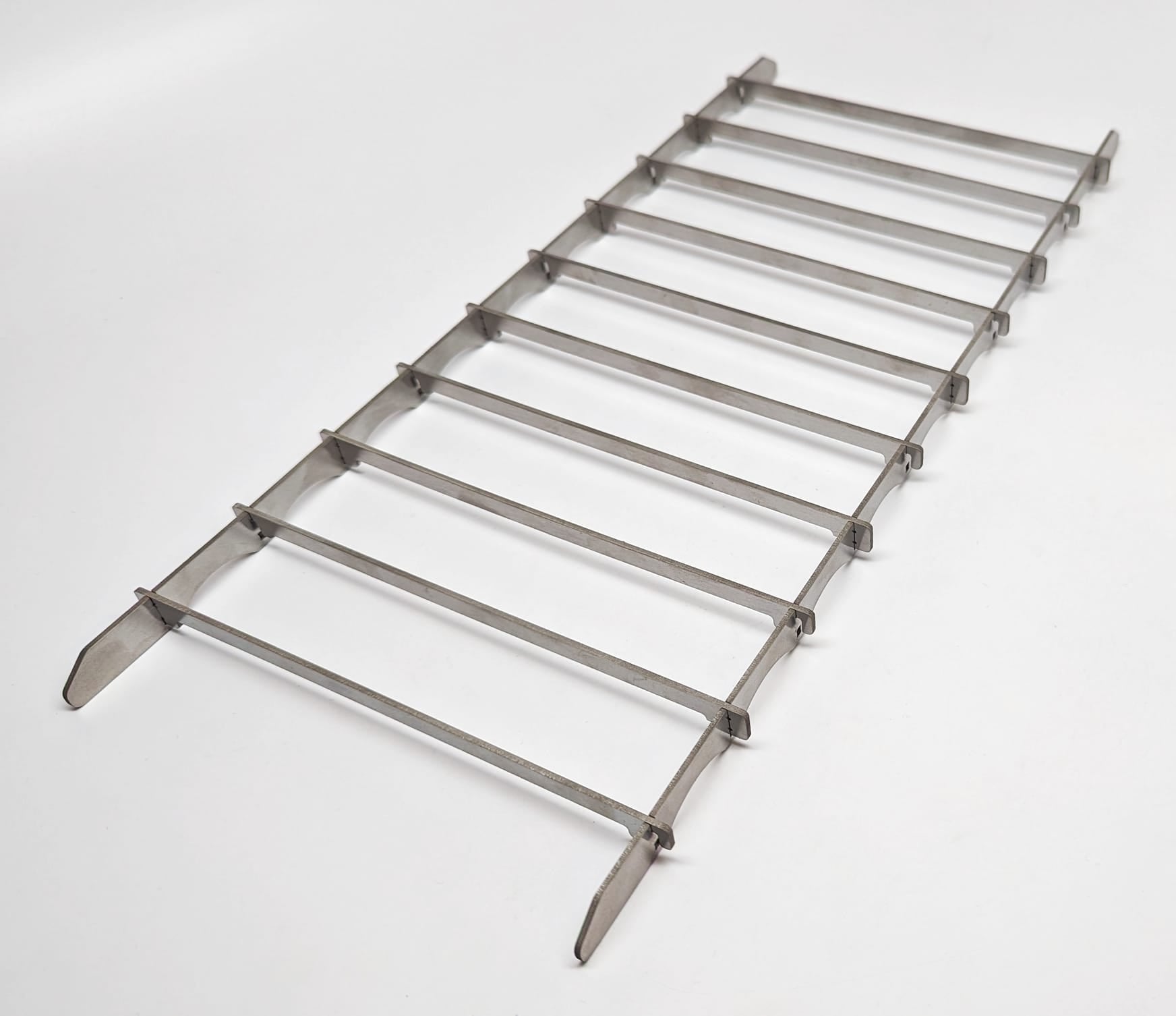 The Manak titanium backpacking grill is assembled and positively locked together using the Suluk 46 Flex-lock system, relying on the high spring rate of titanium to keep it rigid when the cross members are snapped into place. The grill takes less than 1 minute to assemble, but there is a technique and process. Please be sure to read the instructions or watch our video on how to do it.