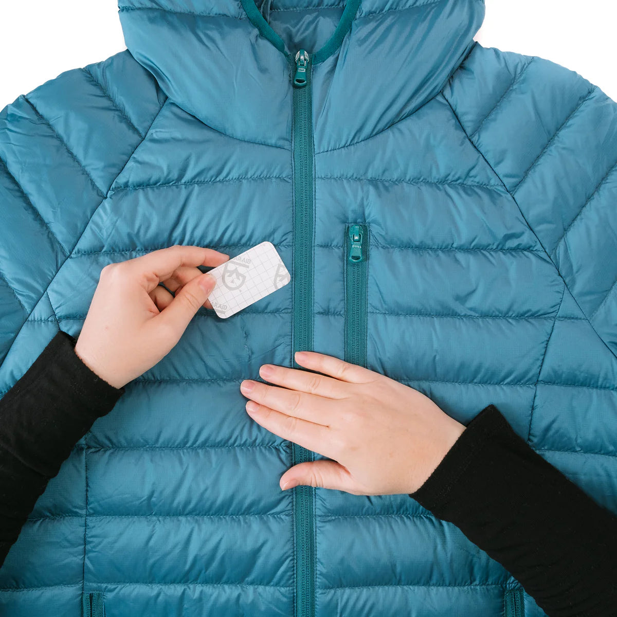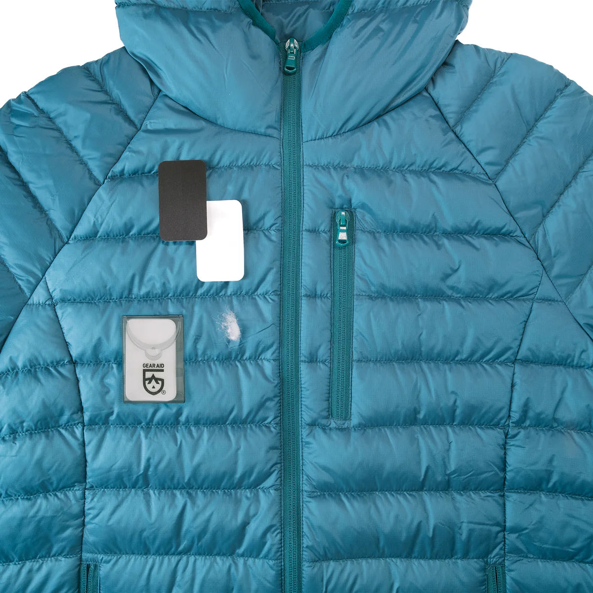 Instantly fix rips and tears on down jackets on the go with Tenacious Tape Mini Patches. Apply it on puffy coats or sleeping bags to quickly stop feathers from leaking or use one to fix a ripped GORE-TEX jacket or torn tent. This convenient pocket pack includes three clear and three black nylon mini patches (1.5” x 2.5”). With no heat required, simply peel and stick for quick, on-the-go repairs. Throw some Tenacious Tape Mini Patches in a backpack or pocket and never worry about ripped gear again.
