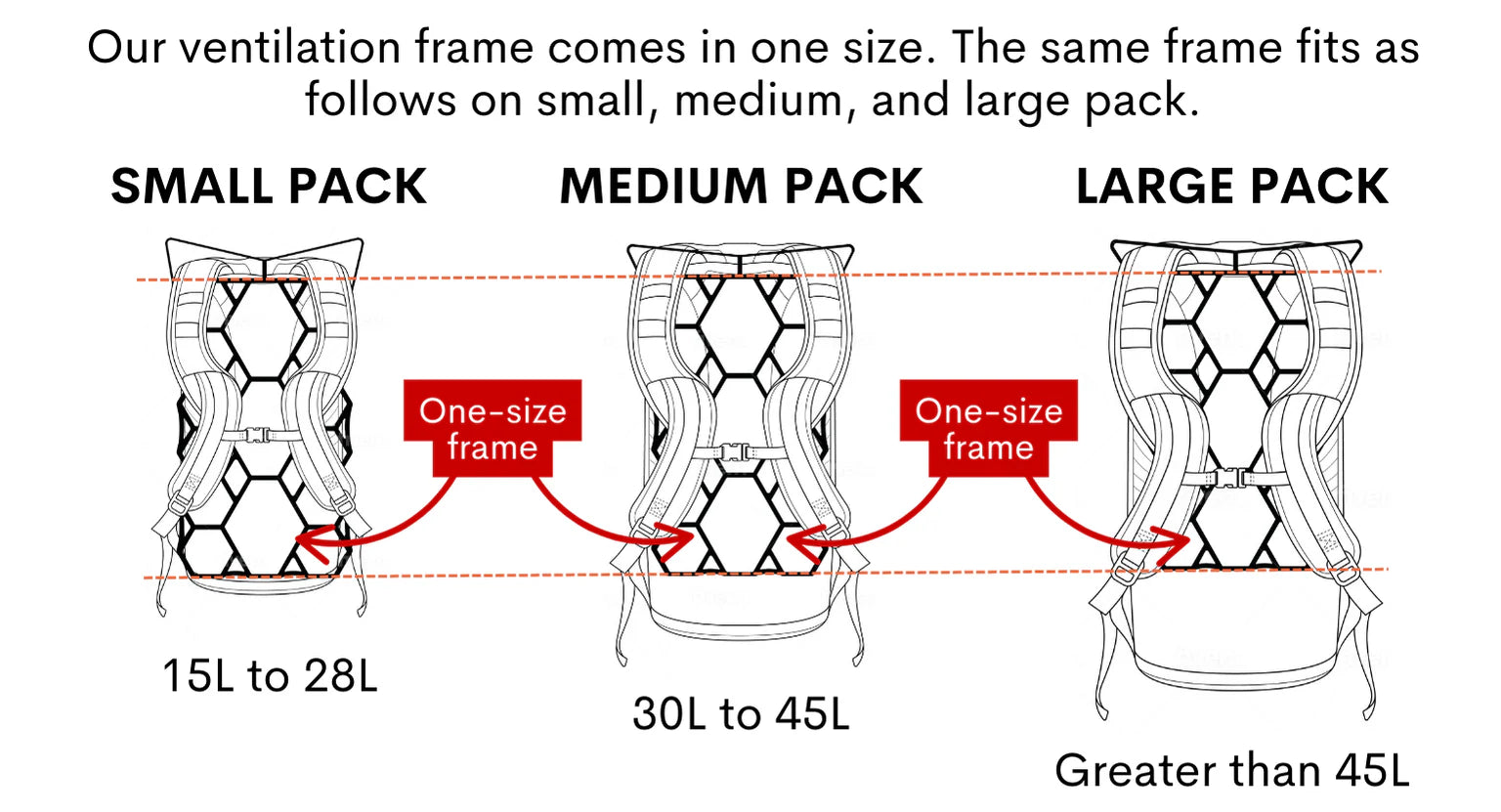 If your backpack lacks ventilation and causes you to sweat too much, our frame is the solution to optimize it. It's the lightest attachable backpack frame, making your backpack perfect. Easily attaches to frame and frameless backpacks. Fits on pack sizes 15L and larger.