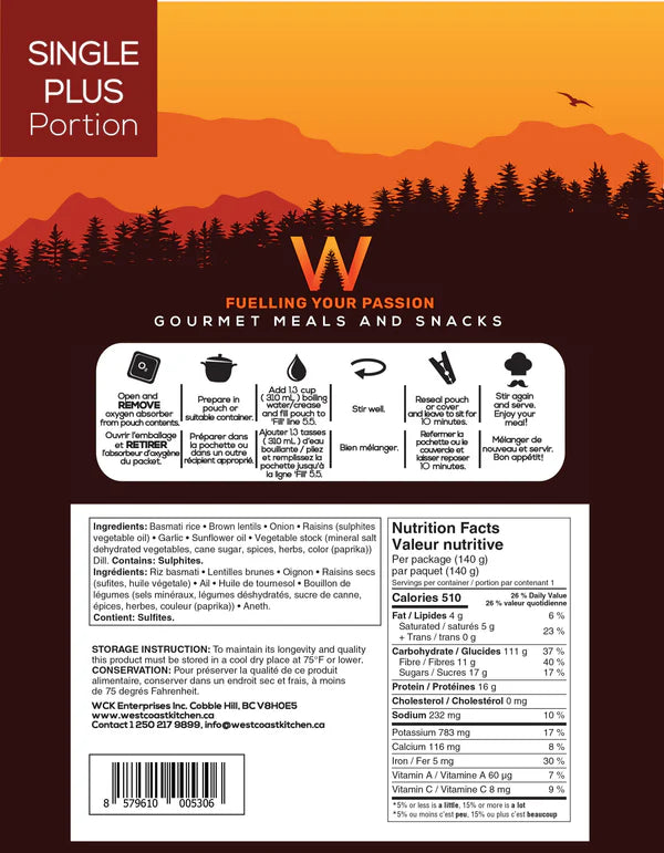West Coast Kitchen - Dill and Lentil Basmati Rice with Raisins (Single Plus)