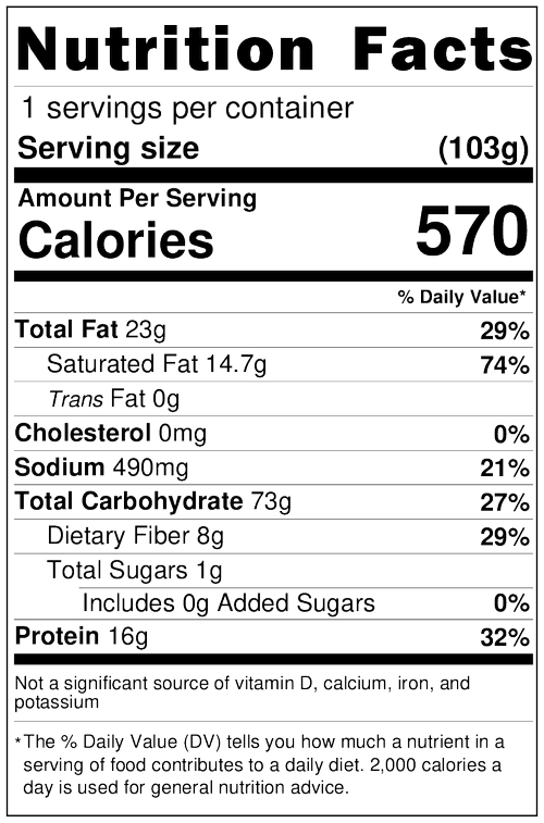 Ingredients: Coconut Milk, Brown Rice, Sweet Potato, Bell Pepper, Red Lentils, White Onion, Spinach Red Chili, Ginger, Tamari, Almond Butter, Olive Oil, Salt, Cumin, Paprika, Cardamom, Cinnamon, Coriander, Turmeric,